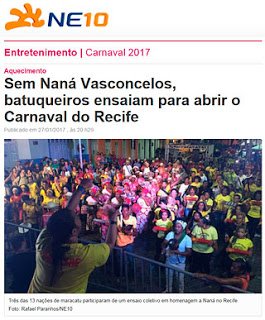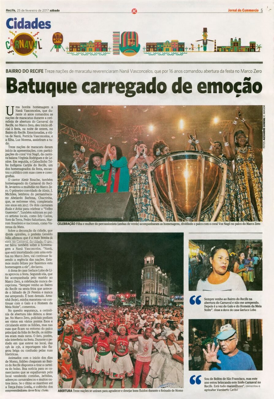 BOL NOTÍCIAS – HOMENAGEM A NANÁ VASCONCELOS EMOCIONA PÚBLICO NA ABERTURA DO CARNAVAL DO RECIFE