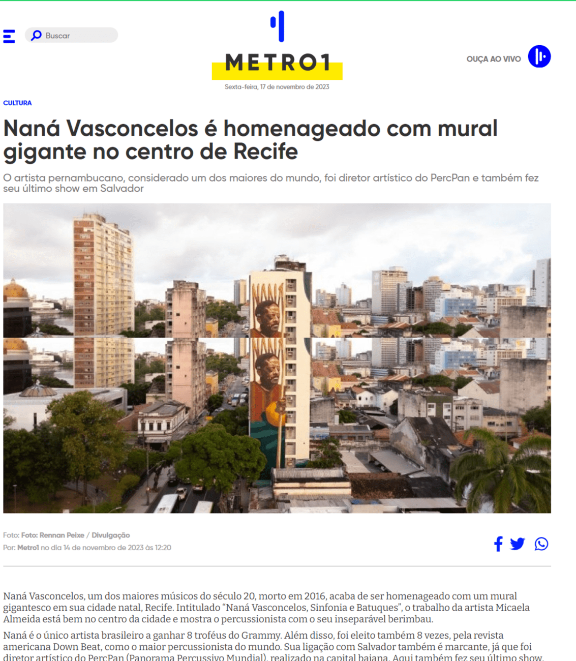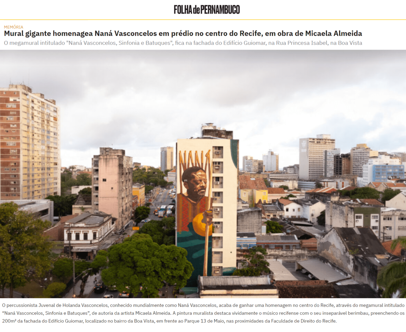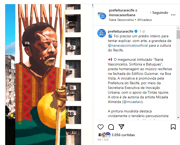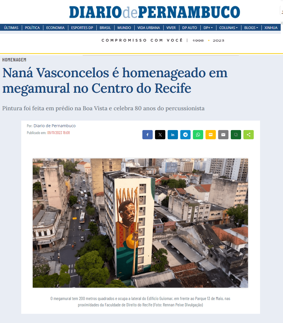 Saiba mais: https://www.folhape.com.br/cultura/nana-vasconcelos-e-celebrado-em-mural-gigante-na-boa-vista/300855/