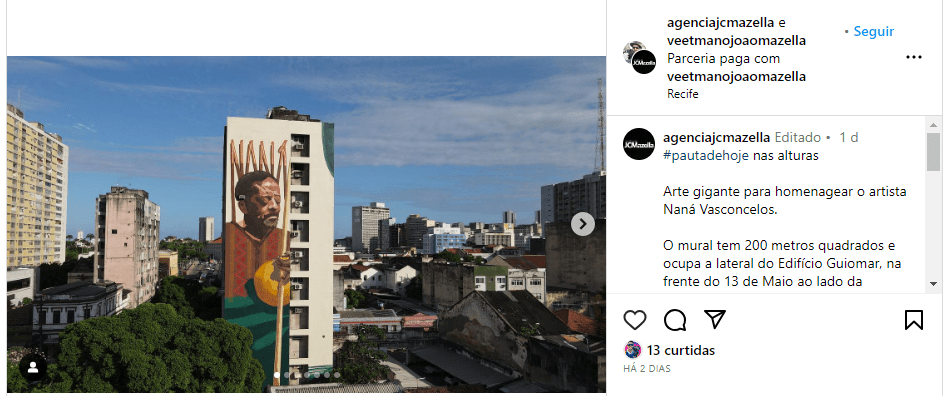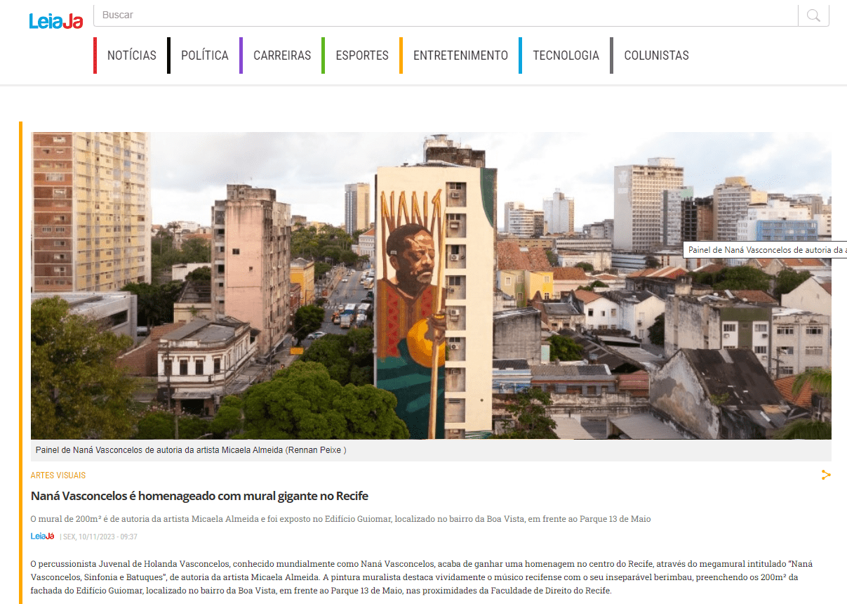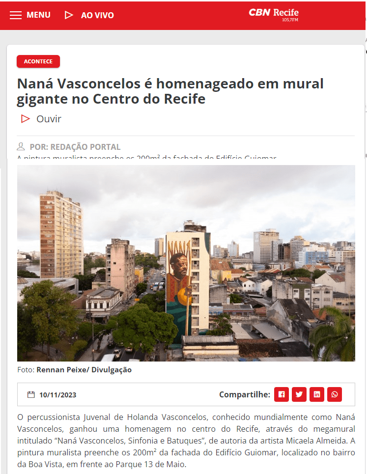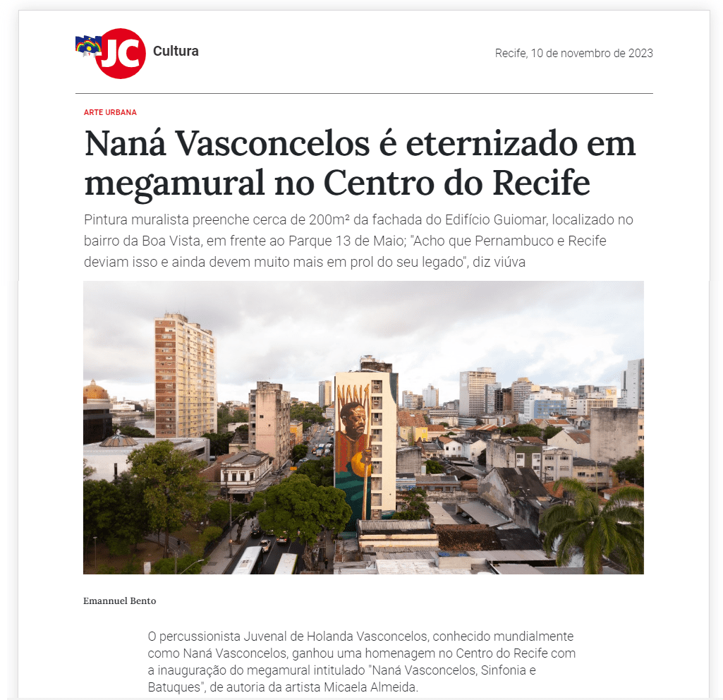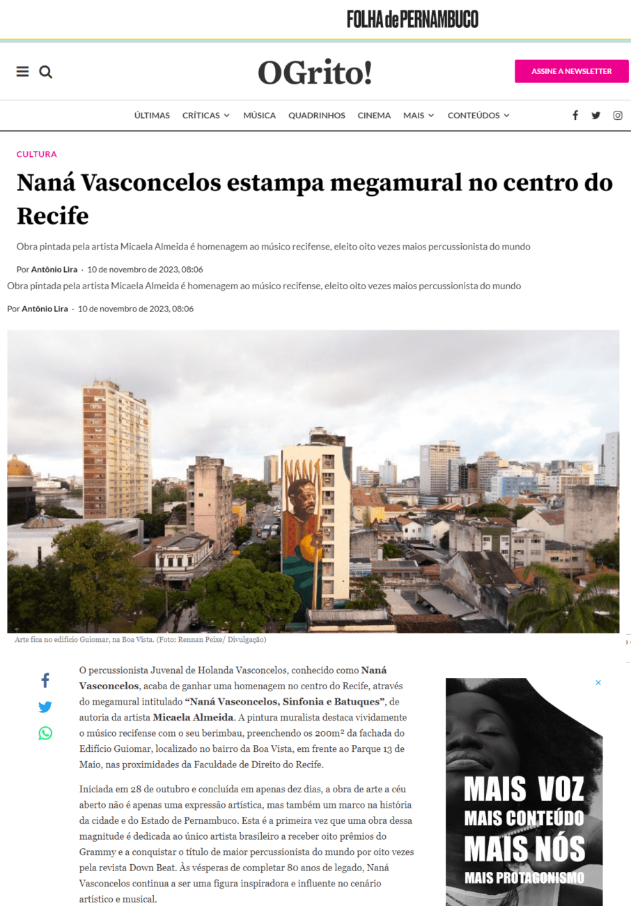 Saiba mais: https://revistaogrito.com/nana-vasconcelos-estampa-megamural-no-centro-do-recife/