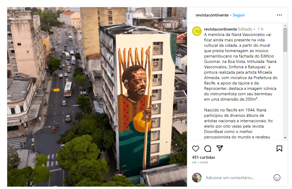 Leia mais: https://www.terramagazine.com.br/nana-vasconcelos-ganha-homenagem-em-megamural-no-centro-do-recife/