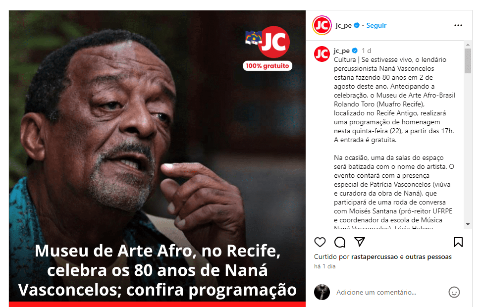 Saiba mais: https://www.gov.br/fundaj/pt-br/centrais-de-conteudo/noticias-1/nana-vasconcelos-homenageado-com-catedra
