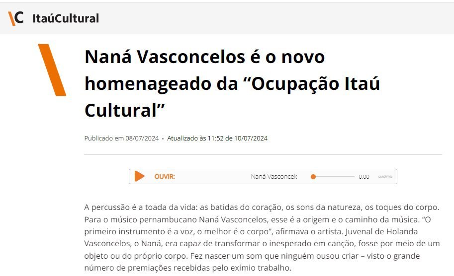 Acesso atraves do link: https://www.itaucultural.org.br/ocupacao/nana-vasconcelos/