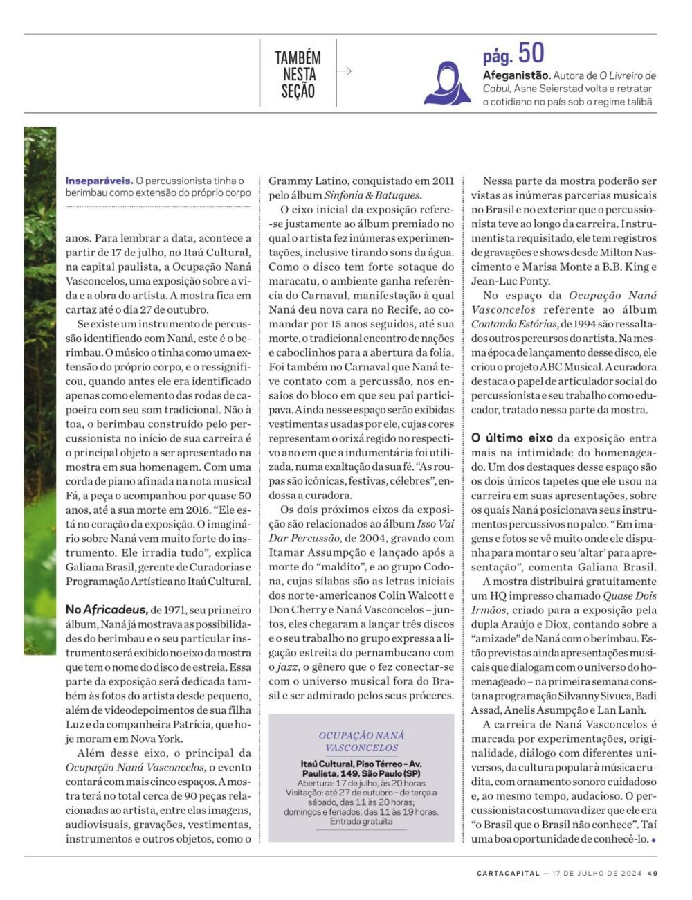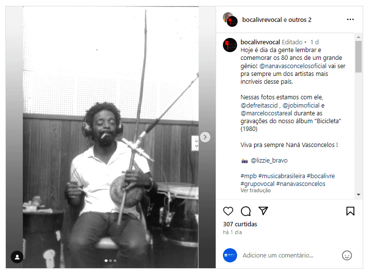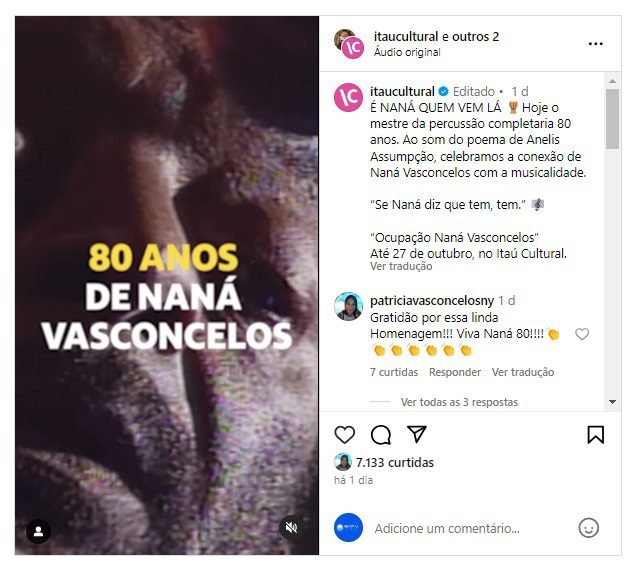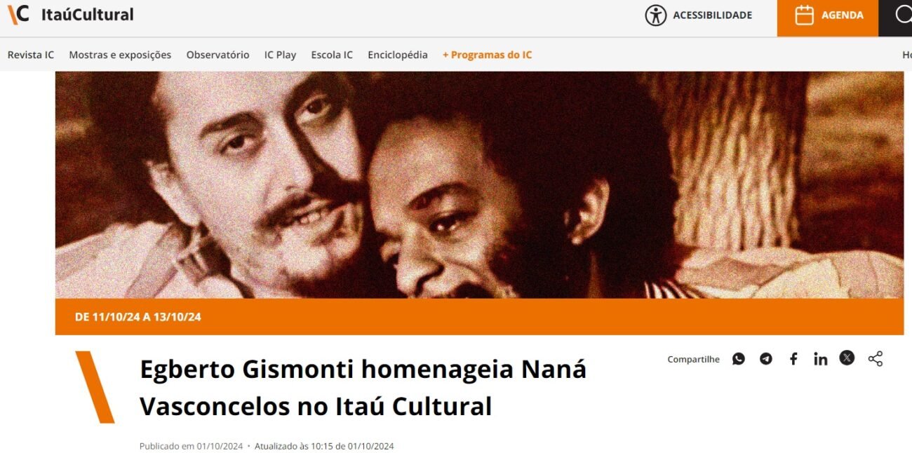 Saiba mais clicando no link: https://www.itaucultural.org.br/secoes/agenda-cultural/egberto-gismonti-homenageia-nana-vasconcelos-no-itau-cultural